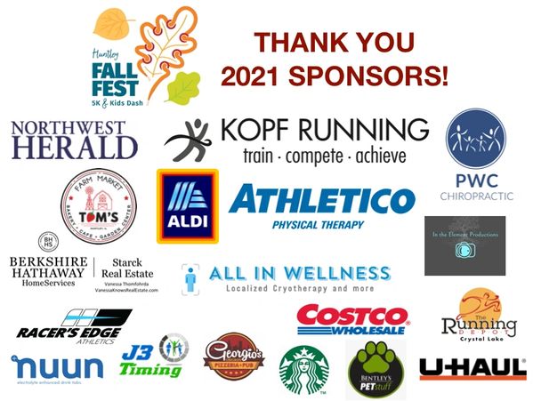 Huntley Fall Fest 5K & Kids Dash is presented by Kopf Running, an endurance training company that provides customized training programs to individuals of all ages and levels. Our goal is to create a more healthy, happy community through physical activity! Free group run/walk every Wednesday evening at 6:30pm at Sunset Park in Lake in the Hills or other locations as announced on social media. Our certified running coaches also create race training programs personalized to each individual runner. They are are easy to follow -- for both the beginner runner and experienced runner alike. Corporate wellness offerings include Worksite Wellness Seminars and Group Fun Run/Walks. Visit www.kopfrunning.com for additional information and to register for a training program or event.